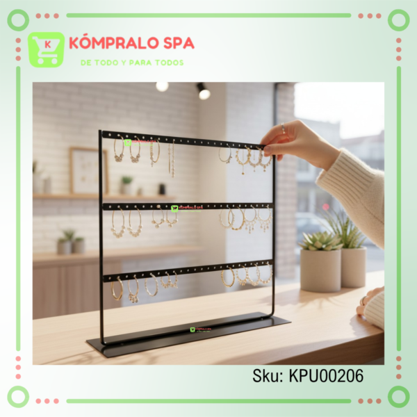 Exhibidor Collar y Aros Metal 6 Collares 16 Pares De Aros Negro