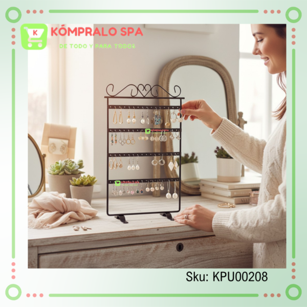 Exhibidor Collar y Aros Metal 6 Collares 16 Pares De Aros Cobre