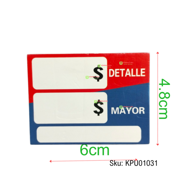 100 etiquetas de Precio Mayor y Detalle 6×4.8cm Azul Rojo YM