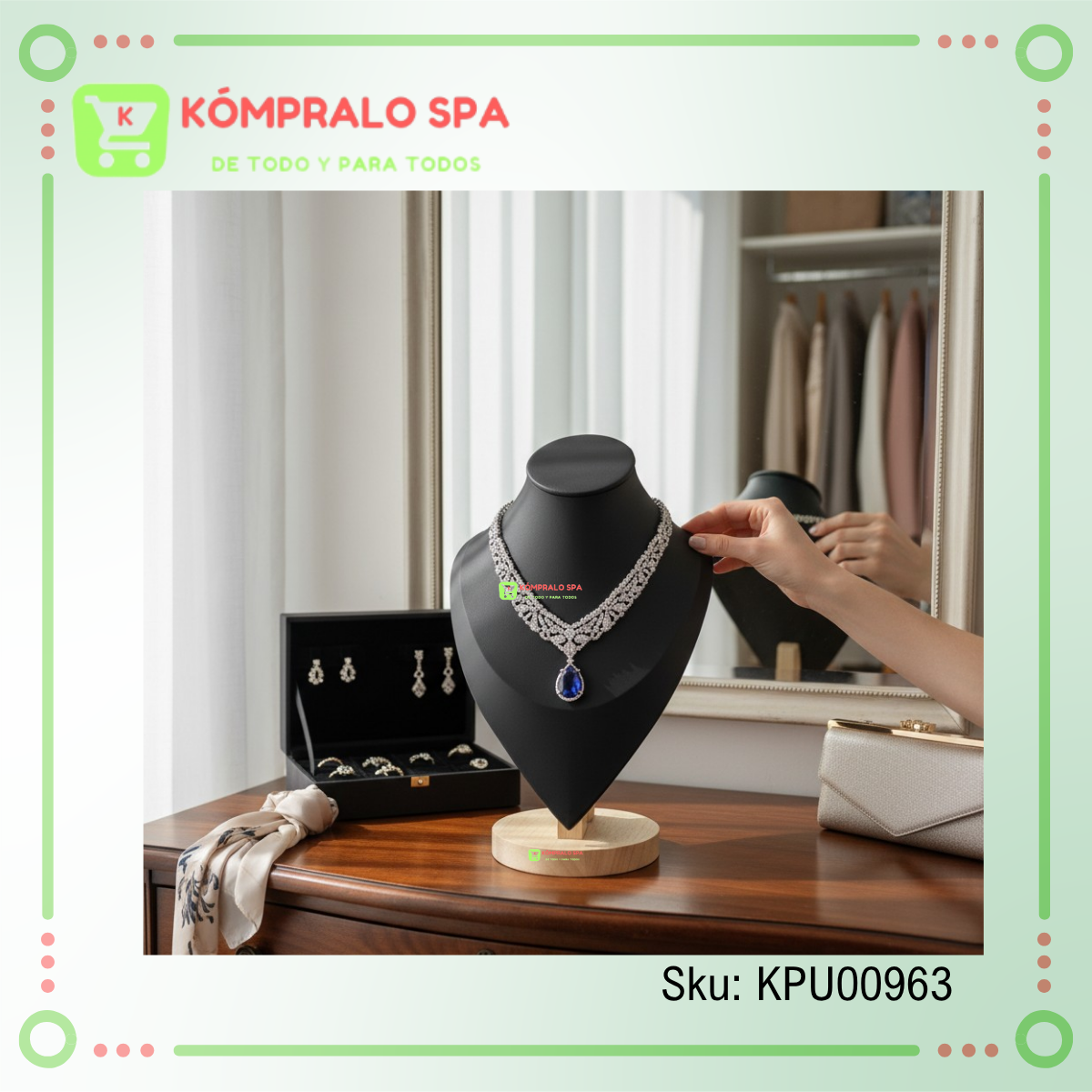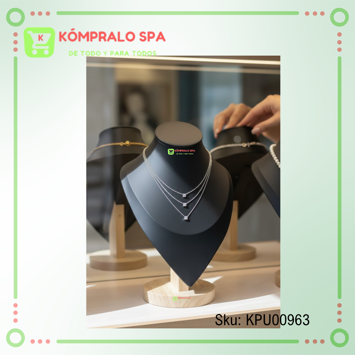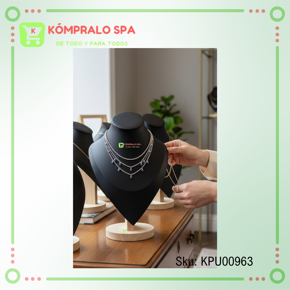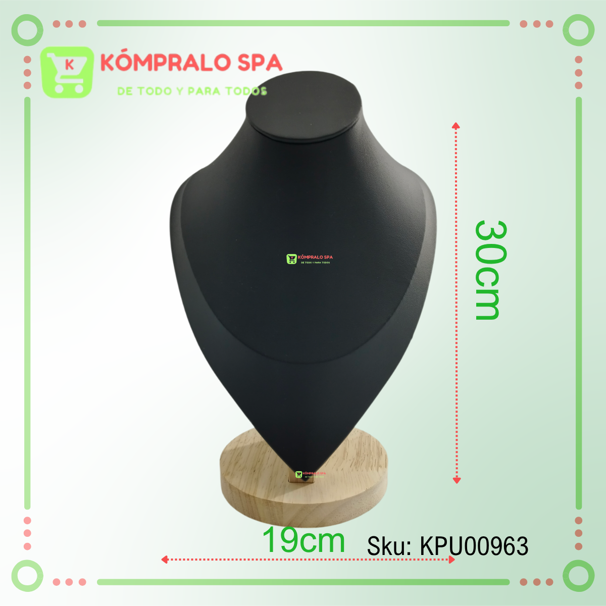 Exhibidor De Collar Cadenas Cuerina Negro Base Madera Redonda 30cm Ideal para exhibir tus joyas mas amada y para las ventas de tu Tienda, Local Comercial Boutique y Más.