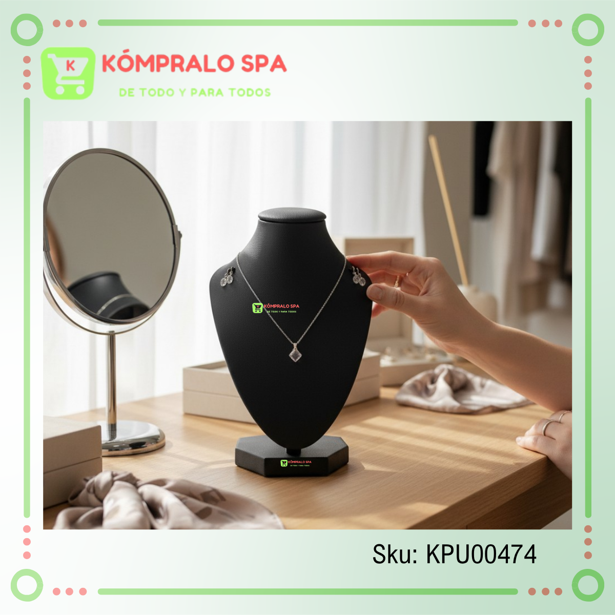 Be the first to review “Exhibidor De Collar Cadenas de Cuerina Negro 24cm”